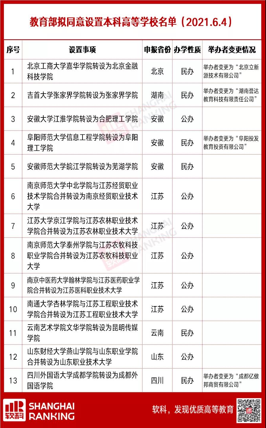 6月4日,教育部發(fā)布《關(guān)于擬同意設置本科高等學校的公示》,經(jīng)第七屆全國高等學校設置評議委員會專家考察和評議,并經(jīng)黨組會審議,擬同意北京工商大學嘉華學院等13所獨立學院轉(zhuǎn)設為獨立設置的本科學校,現(xiàn)將學校名單等信息向社會公示,一起來看~