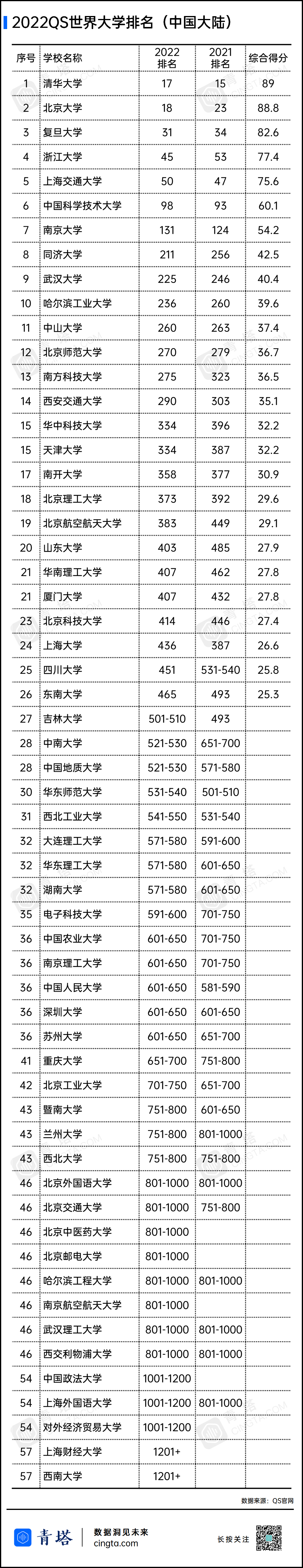 今年的QS世界大學(xué)排行榜共有58所中國內(nèi)地高校上榜。