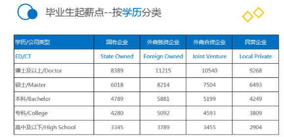 并且,同等學(xué)歷在不同企業(yè)類型下的薪資起伏,遠(yuǎn)遠(yuǎn)小于不同學(xué)歷等級之間的薪資起伏程度。