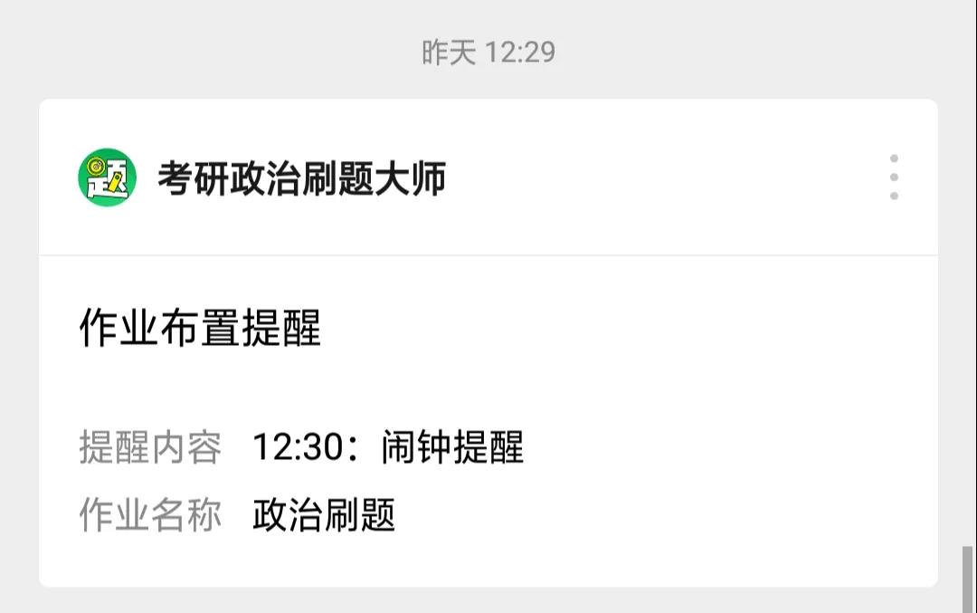 擔(dān)心自己懶癌又犯使政治刷題大業(yè)荒蕪?刷題鬧鐘專屬叫醒貼心服務(wù)上線!根據(jù)你的復(fù)習(xí)計(jì)劃設(shè)置刷題鬧鐘提醒,努力成為一名合格的時(shí)間管理大師。