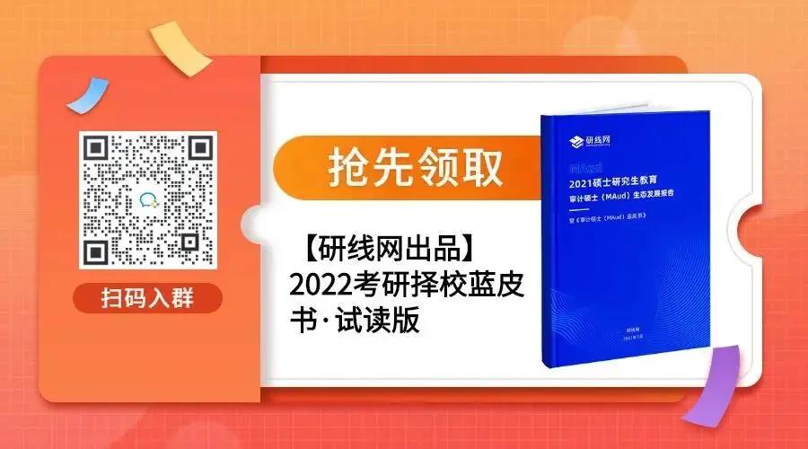 但同學(xué)們先別著急泄氣,想要比別人看得更遠(yuǎn)一些,我們可以選擇站在巨人的肩膀上——【研線網(wǎng)出品】2021碩士研究生教育審計(jì)碩士(MAud)生態(tài)發(fā)展報(bào)告暨《審計(jì)碩士(MAud)藍(lán)皮書(shū)》?。ㄒ韵潞?jiǎn)稱“22考研審計(jì)擇校藍(lán)皮書(shū)”)