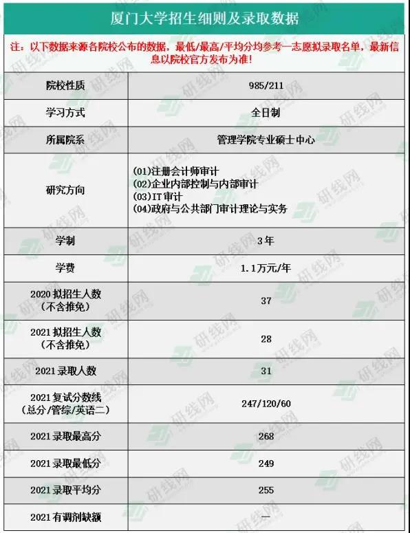 審計(jì)專碩2021年國(guó)家線為179分。國(guó)家線是進(jìn)入復(fù)試的基本成績(jī)要求,過(guò)了國(guó)家線可不要天真以為就上岸無(wú)憂了嗷,還得看院校復(fù)試分?jǐn)?shù)線吶?!?2考研審計(jì)擇校藍(lán)皮書(shū)》為大家整理了49所審計(jì)專業(yè)招生院校2018-2021年的復(fù)試分?jǐn)?shù)線匯總,同學(xué)們可觀察總結(jié)該院校近4年的復(fù)試分?jǐn)?shù)線的漲幅情況。