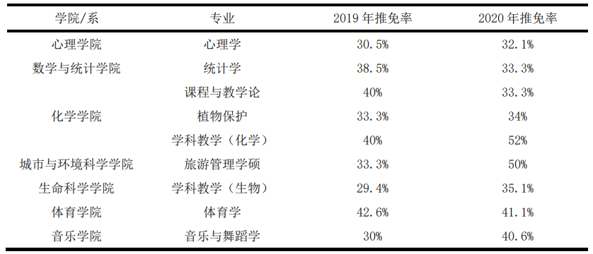 近兩年推免比例比較高的專業(yè)(30%以上):