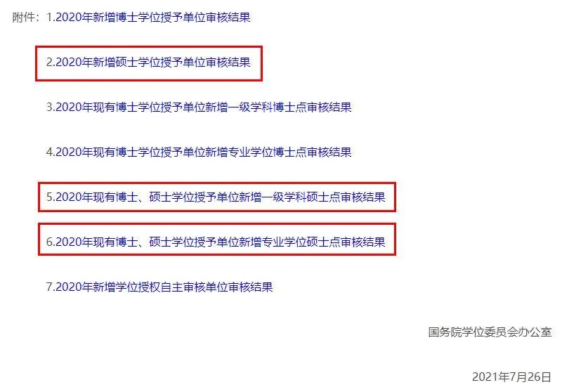 作為考研人,我們只需關注《2020年新增碩士學位授予單位審核結(jié)果》、《2020年現(xiàn)有博士、碩士學位授予單位新增一級學科碩士點審核結(jié)果》、《2020年現(xiàn)有博士、碩士學位授予單位新增專業(yè)學位碩士點審核結(jié)果》這三個文件即可。