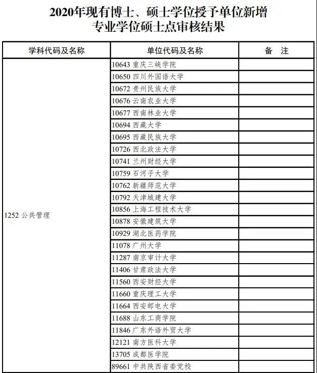 新增博士碩士學位授予單位、博士碩士學位授權點、自主審核單位的審核結(jié)果予以公示。