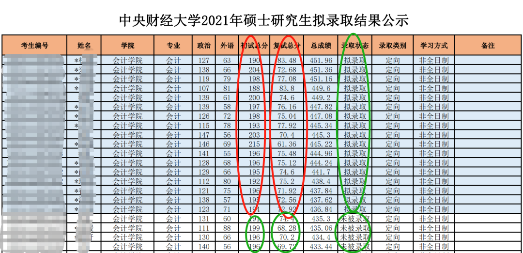 圖片來源:中央財(cái)經(jīng)大學(xué)2021研究生擬錄取名單