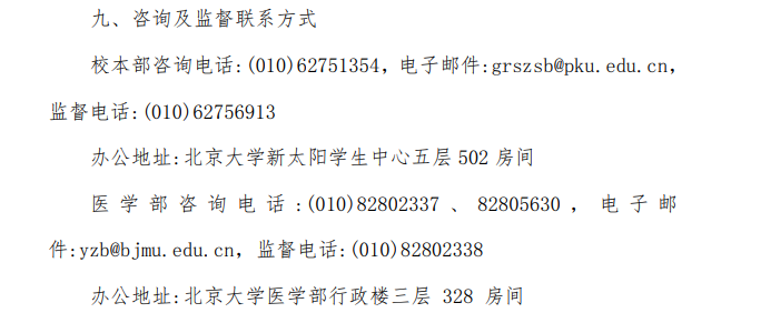 招生簡章、復(fù)試工作辦法中都會公布學(xué)校/學(xué)院的招生電話,撥打前注意理清自己的疑問,在老師解答的過程中做好記錄,并注意撥打電話的時(shí)間,如周一到周五,早9:00-17:00。以北京大學(xué)為例: