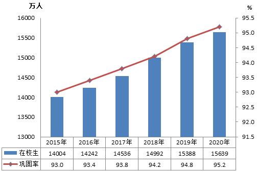 圖3 “十三五”時(shí)期義務(wù)教育在校生和鞏固率