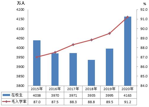 圖4 “十三五”時(shí)期高中階段教育在校生和毛入學(xué)率