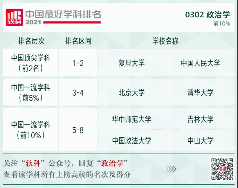 政治學(xué)學(xué)科排名前10%的高校: