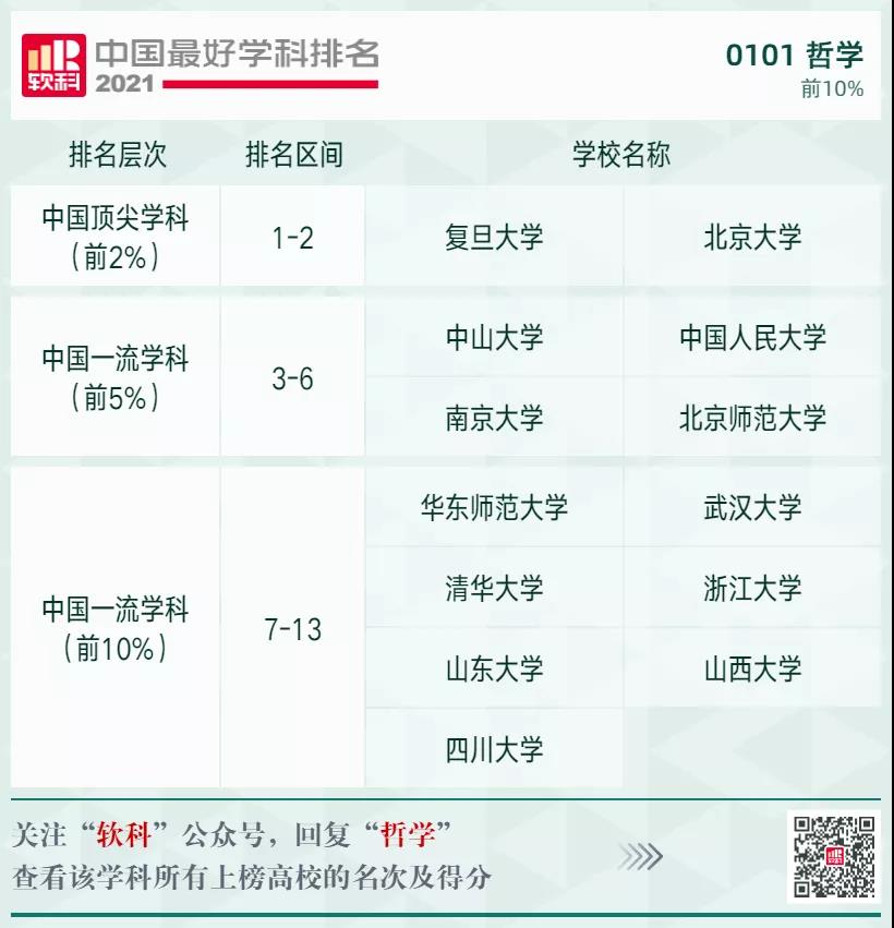 哲學(xué)學(xué)科排名前10%的高校: