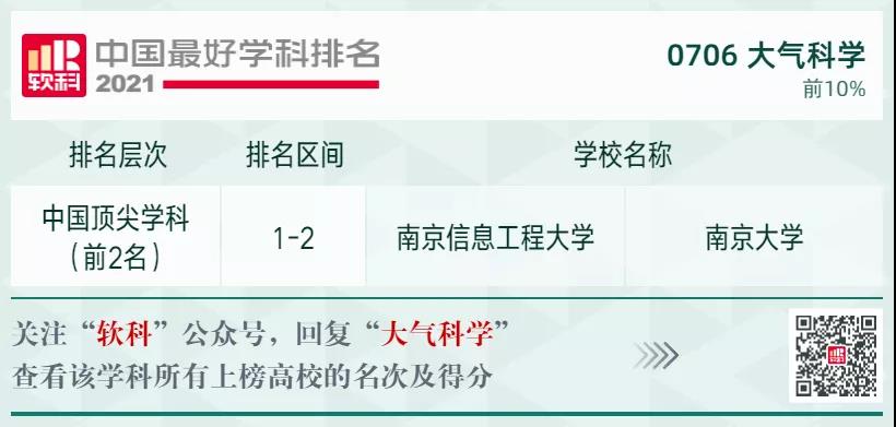 大氣科學(xué)學(xué)科排名前10%的高校:
