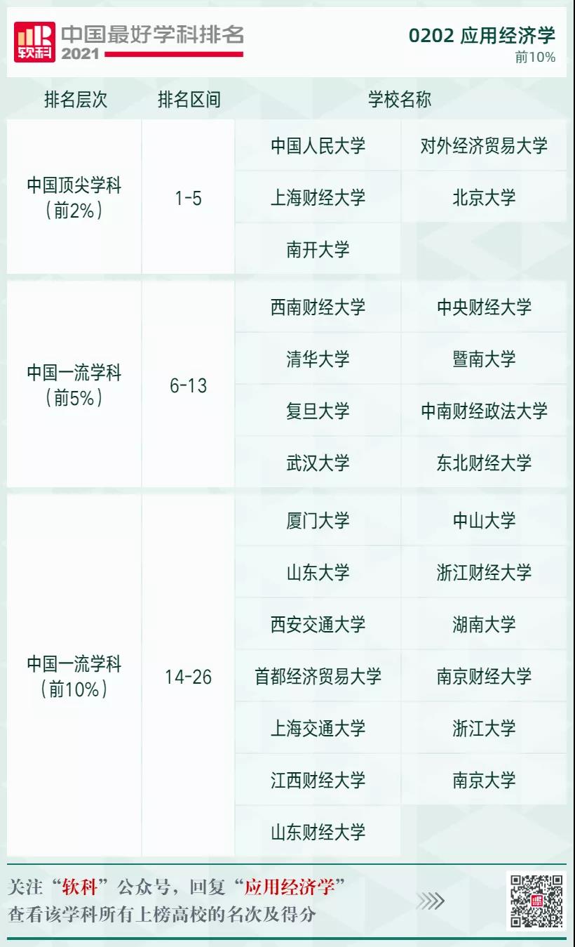 應(yīng)用經(jīng)濟學(xué)學(xué)科排名前10%的高校: