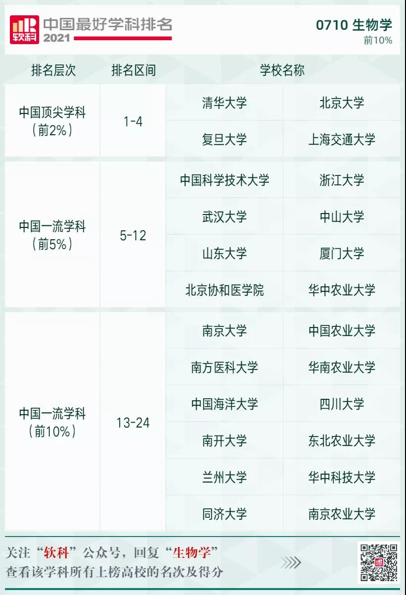 生物學(xué)學(xué)科排名前10%的高校: