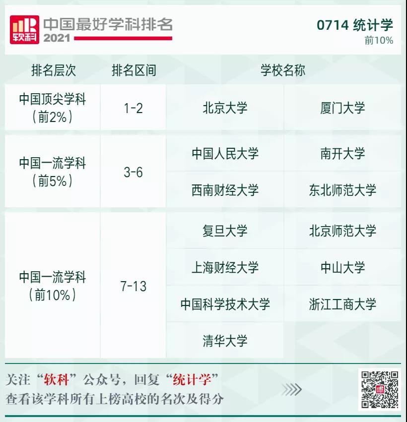 統(tǒng)計學(xué)學(xué)科排名前10%的高校: