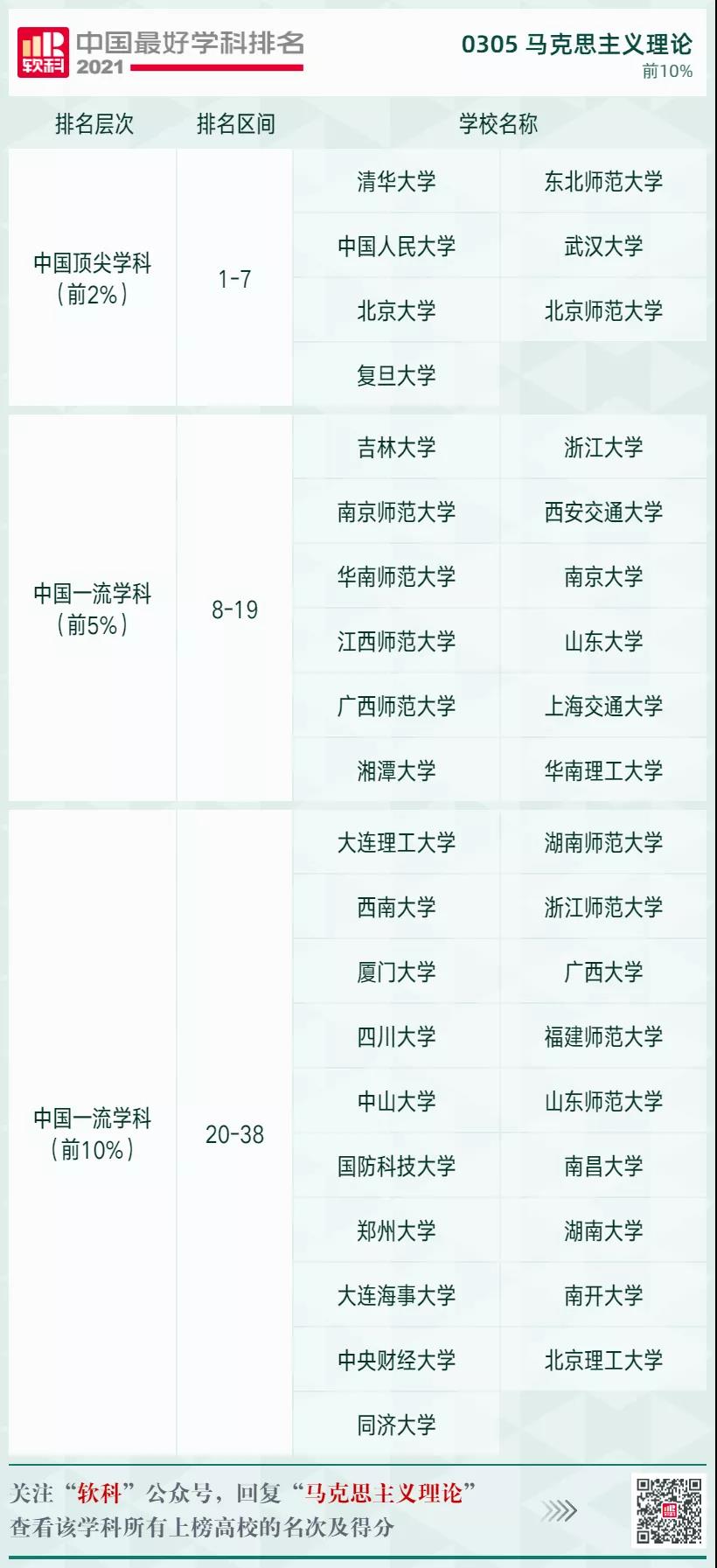 馬克思主義理論學(xué)科排名前10%的高校:
