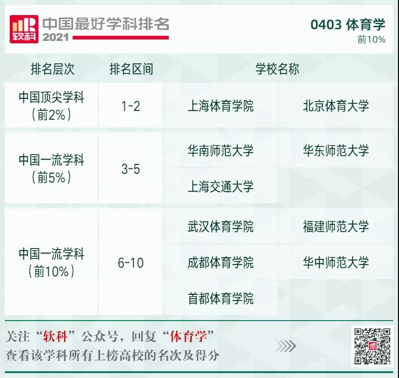 體育學(xué)學(xué)科排名前10%的高校: