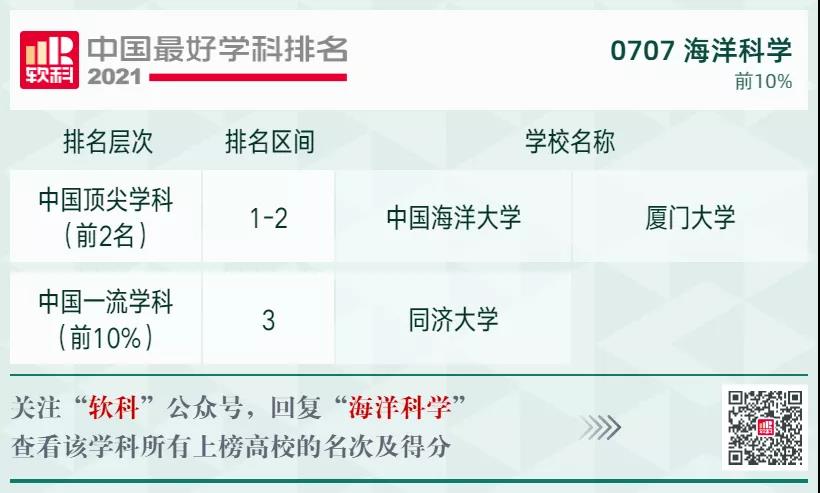 海洋科學(xué)學(xué)科排名前10%的高校:
