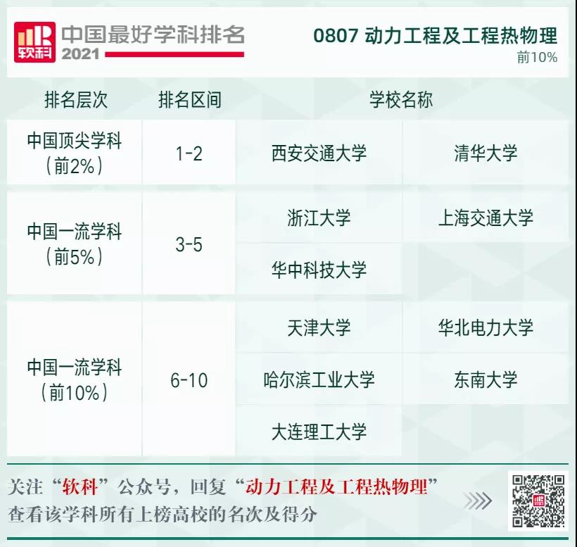 動力工程及工程熱物理學(xué)科排名前10%的高校: