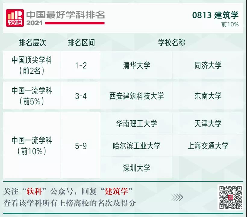 建筑學(xué)學(xué)科排名前10%的高校: