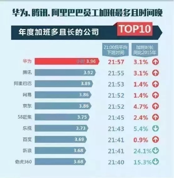 先來看一下2018年年度加班多且長的公司TOP10,從圖中可以看到互聯(lián)網(wǎng)行業(yè)是996的領頭羊。雖然說上榜企業(yè)加班時間長,但是這些企業(yè)也是在國內薪資待遇十分優(yōu)厚的??捎械墓敬龈簧?,996的步伐卻從沒停過,同學們在求職時要擦亮眼睛。