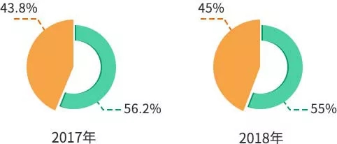 據(jù)教育部統(tǒng)計,2017年共201萬人報考,其中,應(yīng)屆考生113萬人,往屆考生88萬人;2018年共238萬人報考,其中,應(yīng)屆考生131萬人,往屆考生107萬人。從數(shù)據(jù)可知,2017年,往屆生考研人數(shù)占全國報考人數(shù)的43.8%,2018年,往屆生考研人數(shù)占全國報考人數(shù)的45%,同比上升了1.2%。