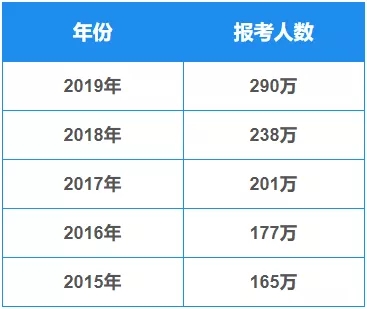 2018年12月23日,又一年的考研大戰(zhàn)開始,這一年的考研人數(shù),再一次變成了“歷史新高”。從教育部公布的數(shù)據(jù)來看,2019年全國考研報名人數(shù)達到了史無前例的290萬人,比2018年考研人數(shù)增加了52萬人,增幅達到了21.8%,考研增加人數(shù)和增長率均為近年來最高。從上圖中可以看出,近5年,考研人數(shù)逐年增長,同2015年的165萬人相比增加了125萬人,研究生報考人數(shù)的快速上漲也引發(fā)了社會的廣泛關(guān)注。
