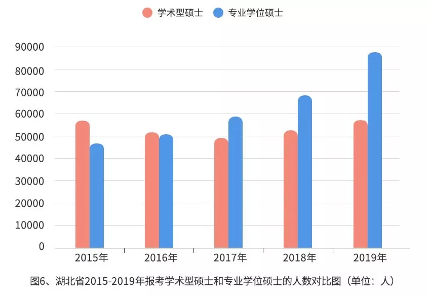 三、專業(yè)學(xué)位碩士的報考人數(shù)趕超學(xué)術(shù)型碩士