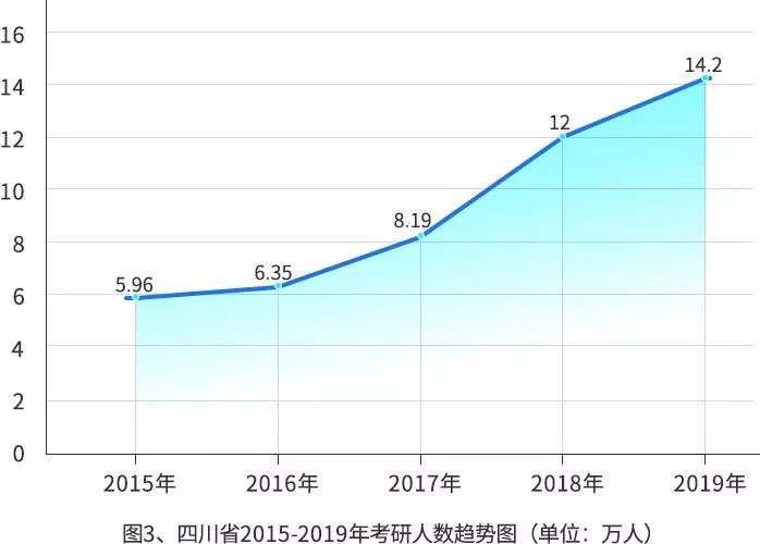 同樣考研人數(shù)近幾年翻番的還有四川省、廣東省、福建省等多個省份。