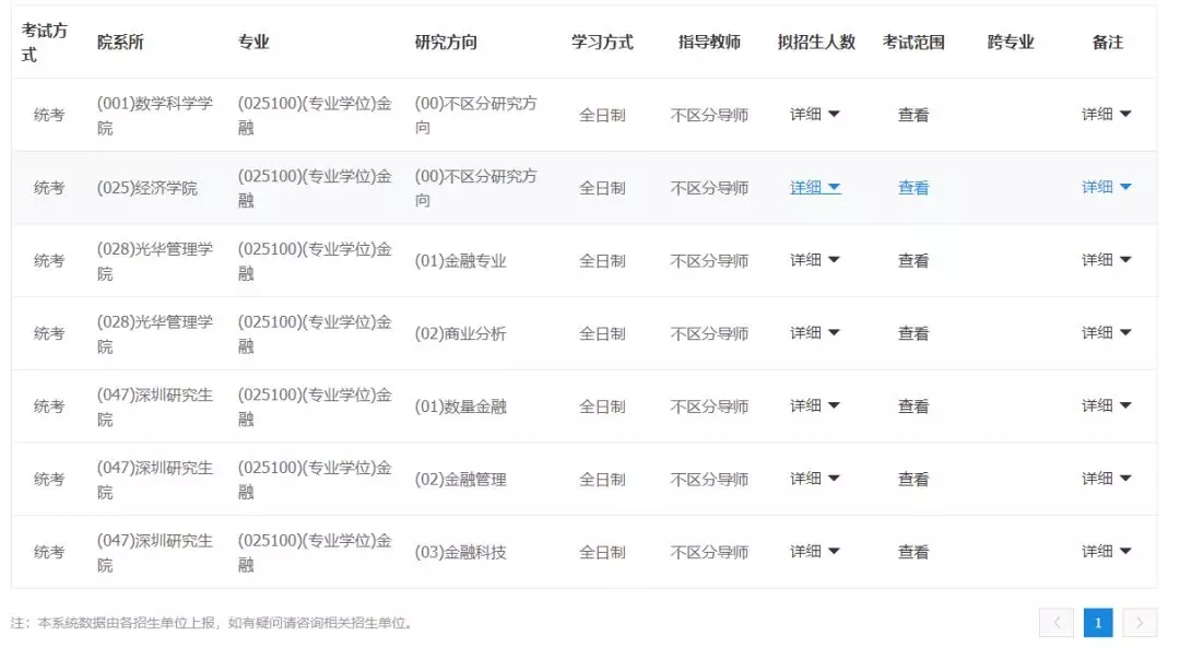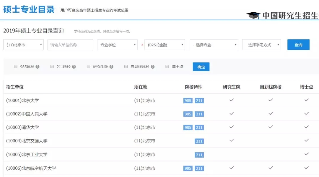 點(diǎn)擊查詢后,就能知道北京招收金融專(zhuān)碩的學(xué)校都有哪些——