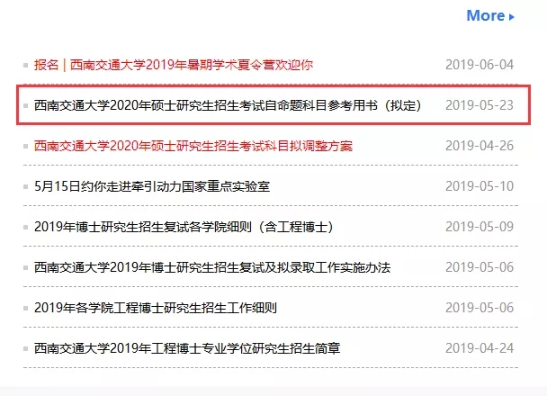 西南交通大學(xué)提前公布了自命題科目參考用書(shū),公告中也明確指出《西南交通大學(xué)2020年碩士研究生招生章程》預(yù)計(jì) 2019 年 9 月公布。