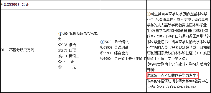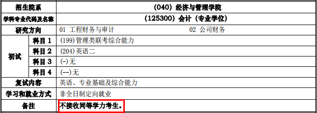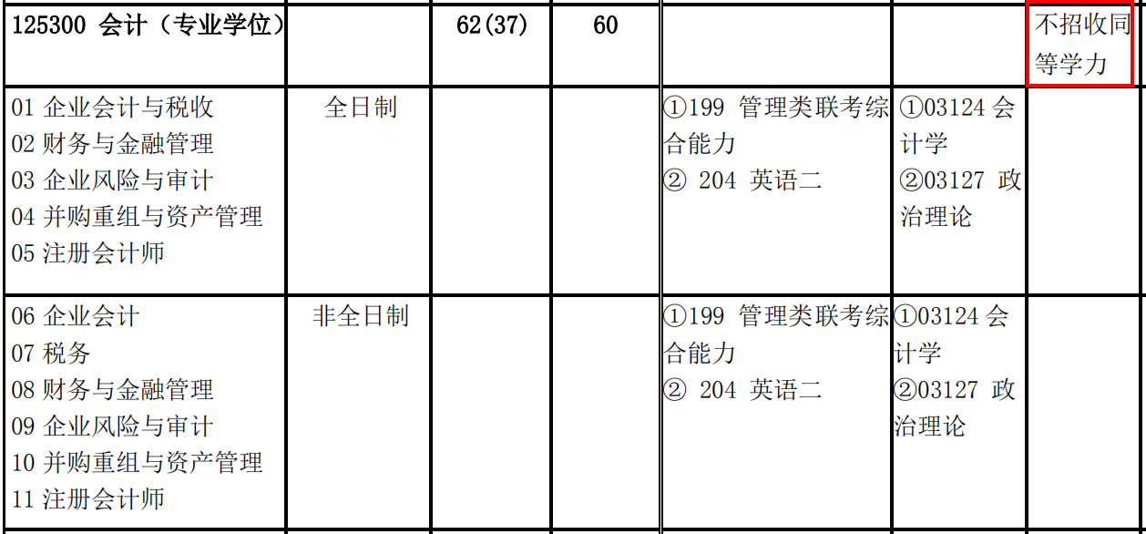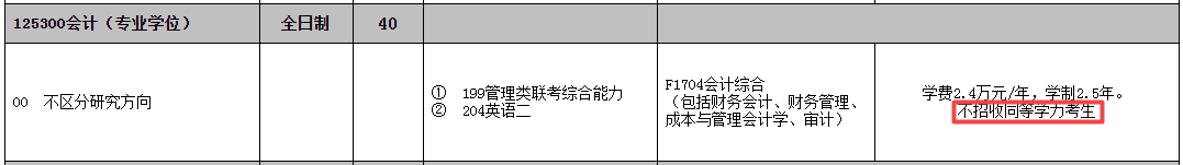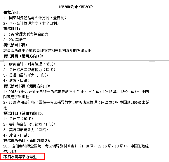 今天整理了明確標(biāo)明“不招收同等學(xué)力”的會計(jì)碩士(MPAcc)招生院校。