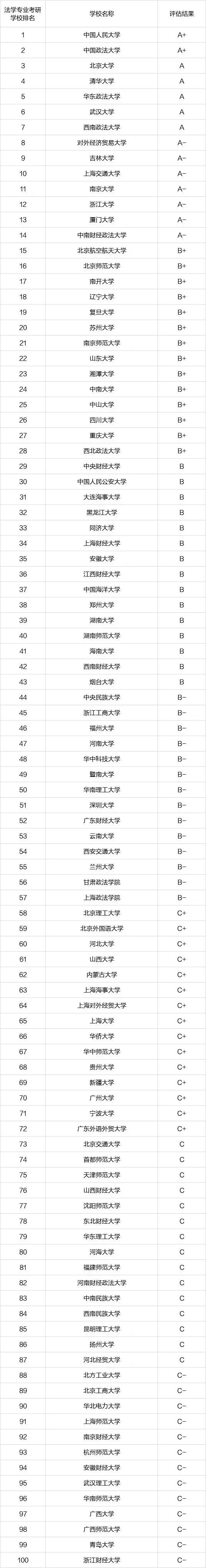 全國(guó)共有100所開設(shè)法學(xué)專業(yè)的大學(xué)參與了排名,其中排名前2的大學(xué)是中國(guó)人民大學(xué)、中國(guó)政法大學(xué),以下是法學(xué)專業(yè)考研學(xué)校排名具體榜單,是目前比較權(quán)威的排名數(shù)據(jù),供大家參考:
