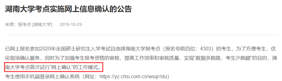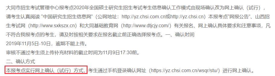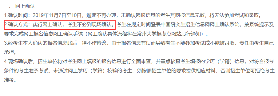 網(wǎng)絡(luò)技術(shù)發(fā)達(dá)的今天,越來(lái)越多的報(bào)考點(diǎn)選擇了網(wǎng)上確認(rèn)。除了以上報(bào)考點(diǎn)之外,還有很多報(bào)考點(diǎn)也支持網(wǎng)上確認(rèn),同學(xué)們要去研招網(wǎng)仔細(xì)查看。