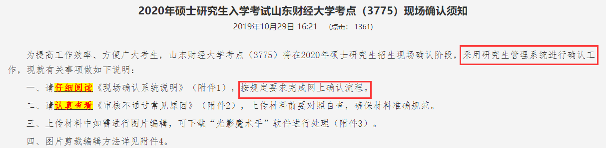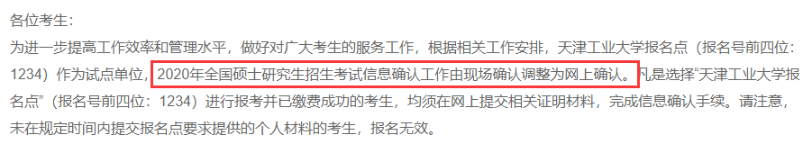 網(wǎng)上報(bào)名結(jié)束之后,現(xiàn)場(chǎng)確認(rèn)是很重要的環(huán)節(jié),現(xiàn)場(chǎng)確認(rèn)成功與否將直接決定你能否參加考試。近年來(lái),考研人數(shù)增多,為了方便考生也為了減輕報(bào)考點(diǎn)的壓力,有許多報(bào)考點(diǎn)已經(jīng)可以進(jìn)行網(wǎng)上確認(rèn)了。