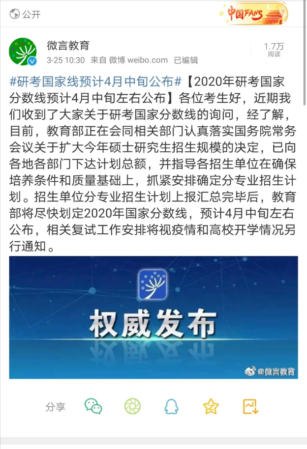 當(dāng)前位置: 考研動態(tài) > 重磅!教育部:2020考研國家線4月中旬公布!