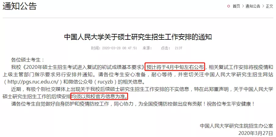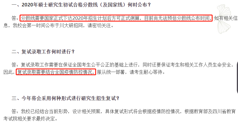 突如其來的新冠病毒疫情打亂了全盤計(jì)劃,針對(duì)目前的形式,必要時(shí)需放棄面對(duì)面的考查形式,加大初始權(quán)重實(shí)行遠(yuǎn)程復(fù)試。如若采取網(wǎng)絡(luò)復(fù)試,碩士新生入學(xué)后還要進(jìn)行一場(chǎng)筆試。面試過程要全程錄音、錄像,并將在新生入學(xué)時(shí)進(jìn)行核對(duì),一旦發(fā)現(xiàn)作弊或者筆試不合格現(xiàn)象,立即取消錄取資格。