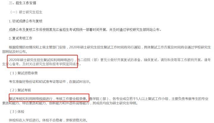 東北石油大學(xué)在疫情防控期間研究生教育工作預(yù)案中表示碩士研究生復(fù)試考核擬利用網(wǎng)絡(luò)視頻進行,考核工作要全程錄像。