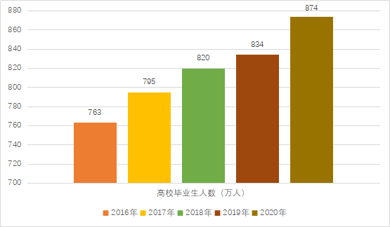 2016-2020年全國高校畢業(yè)生人數(shù)統(tǒng)計