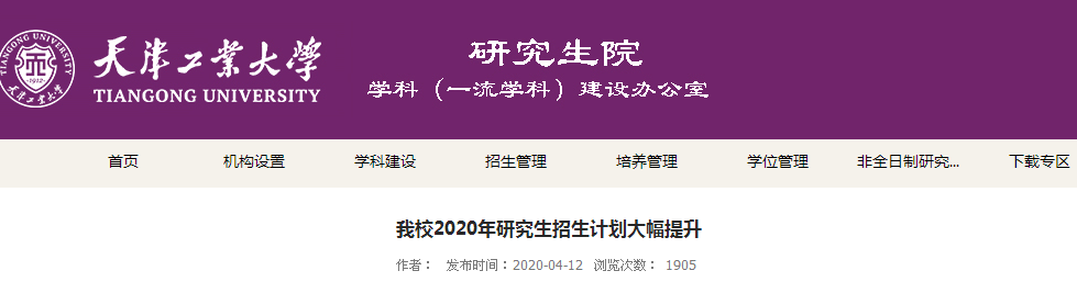 以上就是“天津工業(yè)大學:我校2020年研究生招生計劃大幅提升”的全部內(nèi)容!,更多考研擴招信息,關注我們!