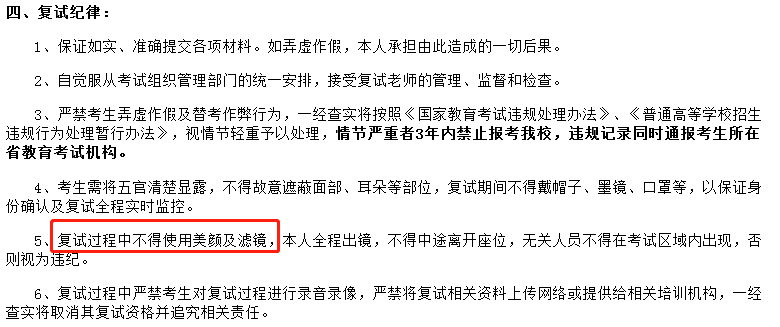 天津大學(xué)要求復(fù)試過程中不得使用美顏及濾鏡。
