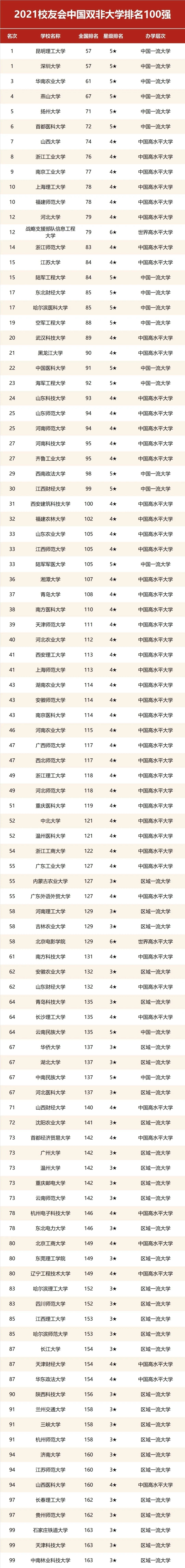 100+所雙非(非一流大學和一流學科建設(shè)高校)院校排名具體情況如下表所示,昆明理工大學、深圳大學、華南農(nóng)業(yè)大學居前三位。