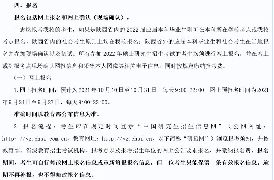 網(wǎng)上預(yù)報(bào)名時(shí)間為2021年9月24日至9月27日,每天9:00-22:00。也就是說(shuō)下個(gè)月大家就可以進(jìn)行考研預(yù)報(bào)名了!雖然不是來(lái)自研招網(wǎng)的消息,但是,從某種程度上來(lái)說(shuō),也算是“官宣”。