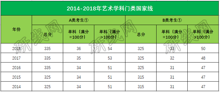 2014-2018年藝術(shù)學(xué)學(xué)科門類國(guó)家線: