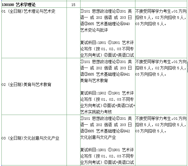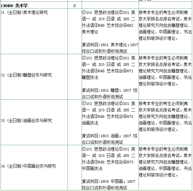 藝術(shù)學(xué)學(xué)科門類考試科目:初試考試科目一般為政治、外語(yǔ)、專業(yè)課。專業(yè)課:專業(yè)一(一般考理論基礎(chǔ));專業(yè)二(一般考你所報(bào)考的方向的基礎(chǔ)知識(shí))。以南京大學(xué)為例:
