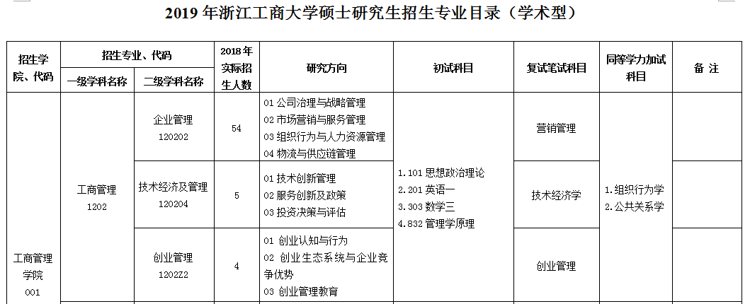 圖片來源:浙江工商大學2019年碩士研究生招生專業(yè)目錄