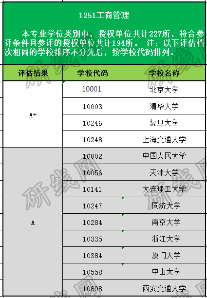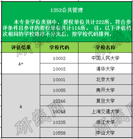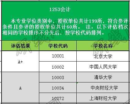 在2018年7月26日發(fā)布的全國首次專業(yè)學位水平評估中,1251工商管理、1252公共管理、1253會計的評估結果如下: