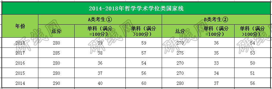 2014-2018年哲學學科門類國家線: