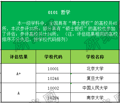其中哲學類學科高校評估結(jié)果為A及A以上等級的學校名稱和代碼如下: