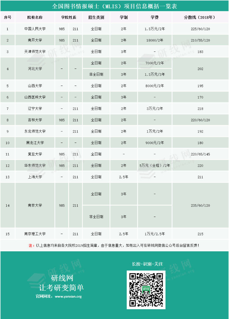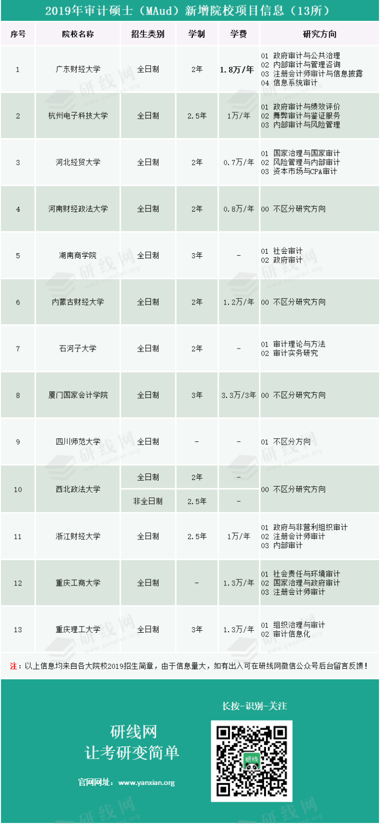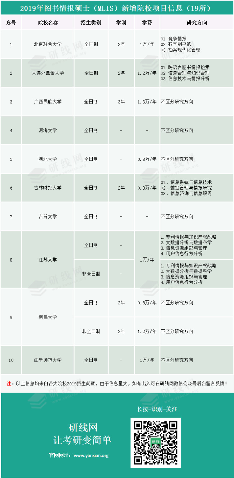 今天,社科賽斯考研網(wǎng)為同學整理了2019年審計碩士(MAud)新增院校項目信息(13所)、2019年圖書情報碩士(MLIS)新增院校項目信息(19所)以及全國圖書情報碩士(MLIS)項目信息概括一覽表和全國審計碩士(MAud)項目信息概括一覽表,快來看看有沒有你需要的信息吧——